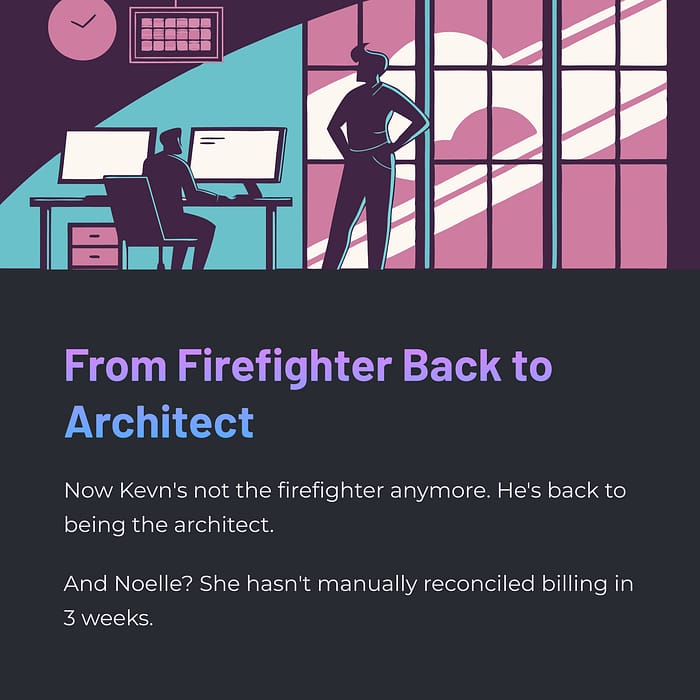 And Noelle, the office manager, was manually reconciling licenses, billing issues, and timesheets, often staying late to catch up.